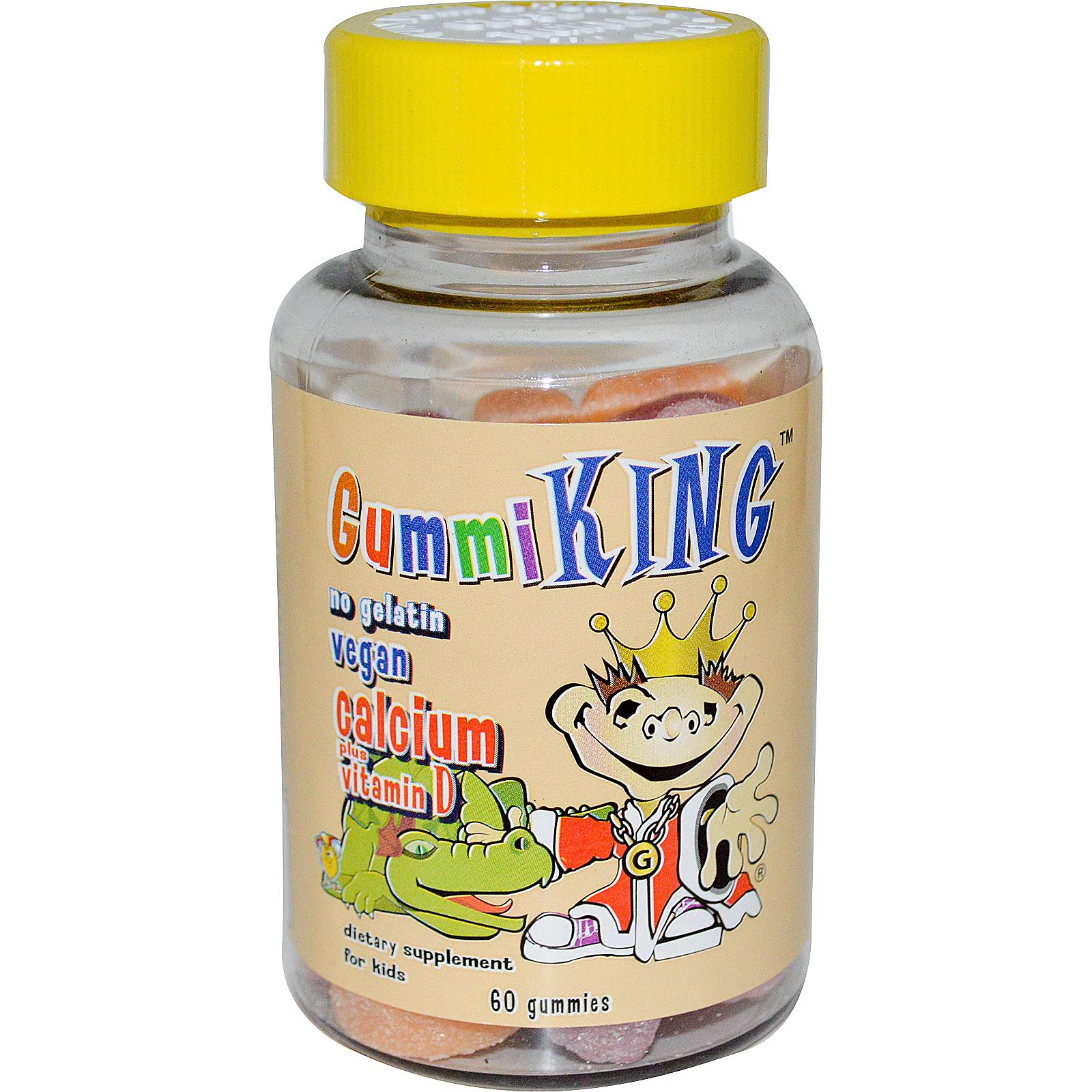 Жевательные конфеты с кальцием и витамином D от Gummi King имеют шесть натуральных фруктовых вкусов (клубника, лимон, апельсин, виноград, вишня и грейпфрут). Они вегетарианские и не содержат желатина, обеспечивая детям кальций и витамин D.