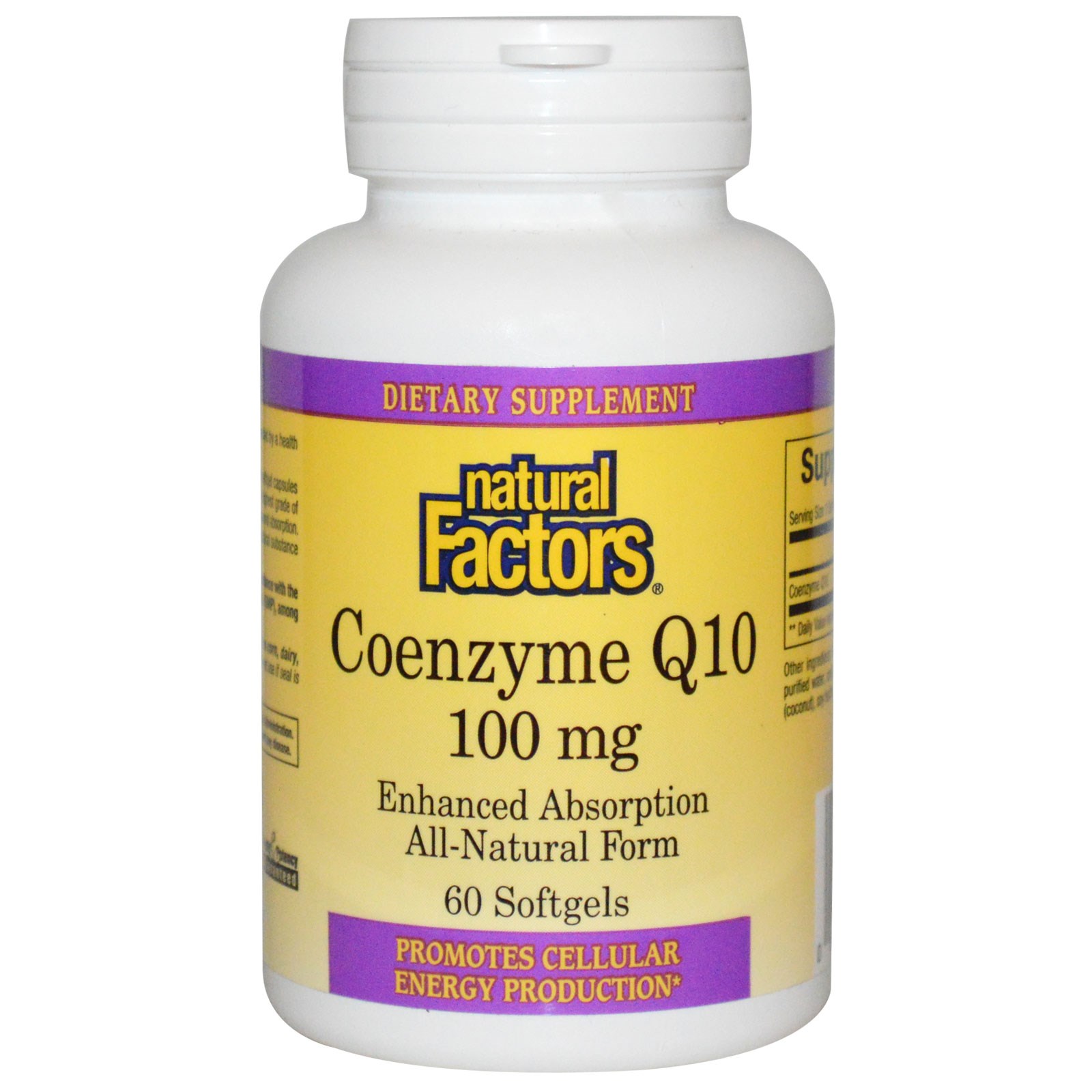 Коэнзим Q10 от Natural Factors в удобных для проглатывания капсулах получают из полностью натуральных ингредиентов. Для лучшей абсорбции, концентрированный коэнзим Q10 разбавляют базисным маслом из рисовых отрубей. Коэнзим Q10, также называемый CoQ10 или убихинон, является природным веществом, необходимым для производства клеточной энергии.