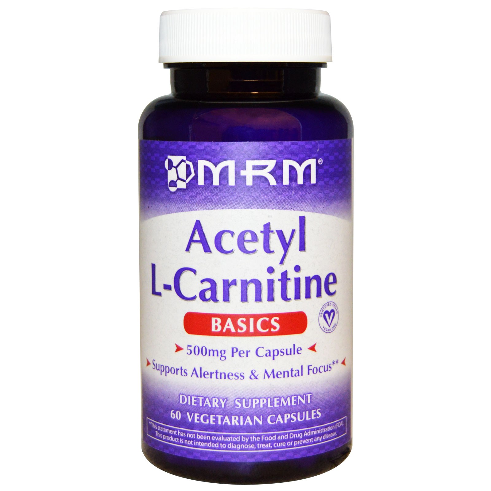 Ацетил L-Карнитин является высоко-биодоступной формой L-Карнитина, способного эффективно пересекать гематоэнцефалический барьер. Действуя в головном мозге в качестве нейрозащиты и антиоксидантного агента, он также поддерживает энергетический обмен. Для поддержания энергетического метаболизма, оптимальной бдительности и внимания MRM добавил витамин B6.